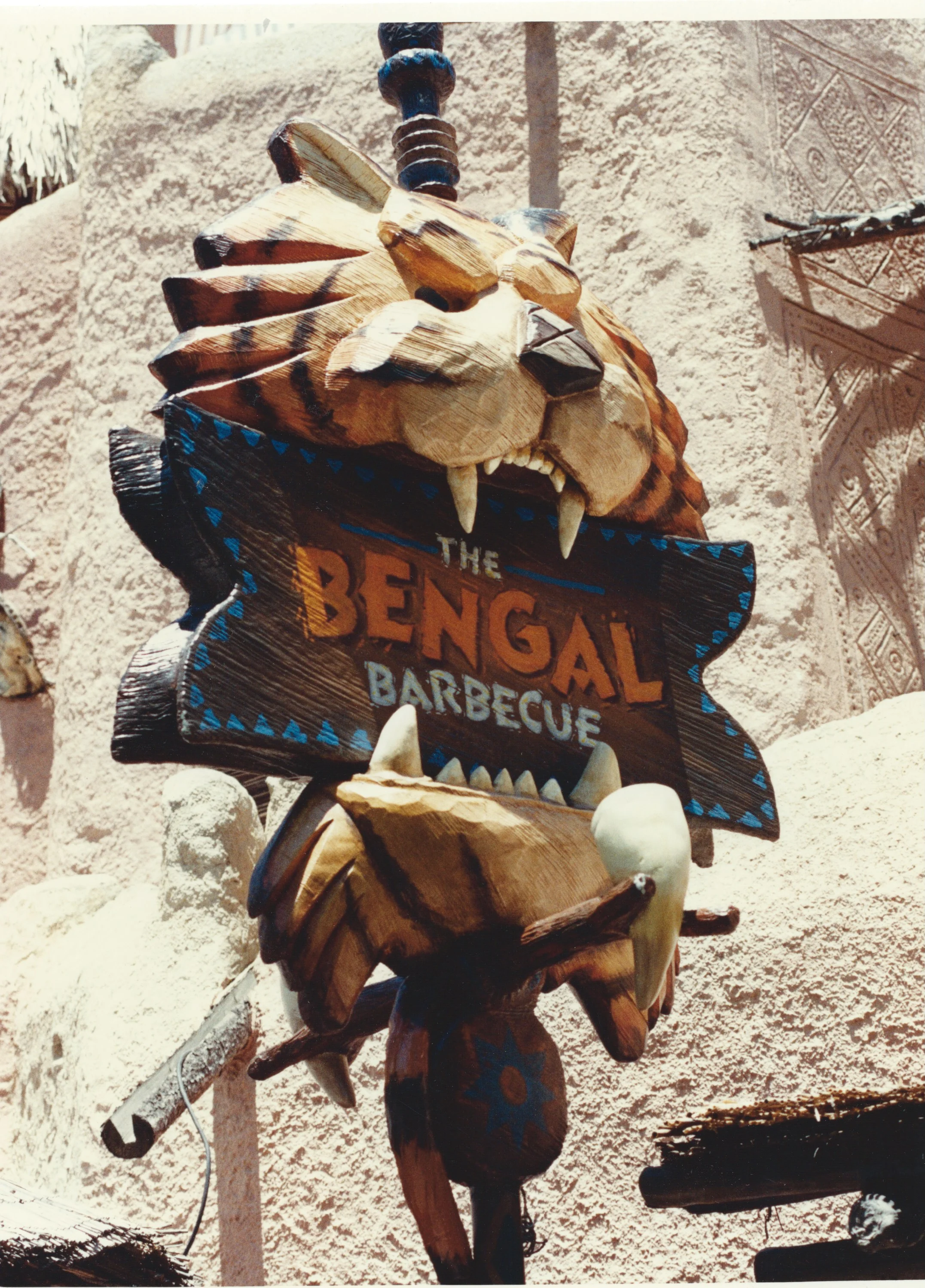 Bengal Barque during construction, this facility replaced Sunkist. I designed and art directed this up grade. The story behind this facility is: Traders found this burnt out tree, struck by lighting and turned it into a barque. Using their crates and other boat supplies to build this walk up food facility around this burning tree.